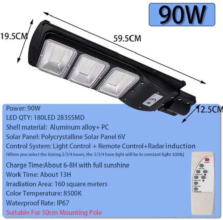 90W Solar LED Street Light with Motion & Night Sensor